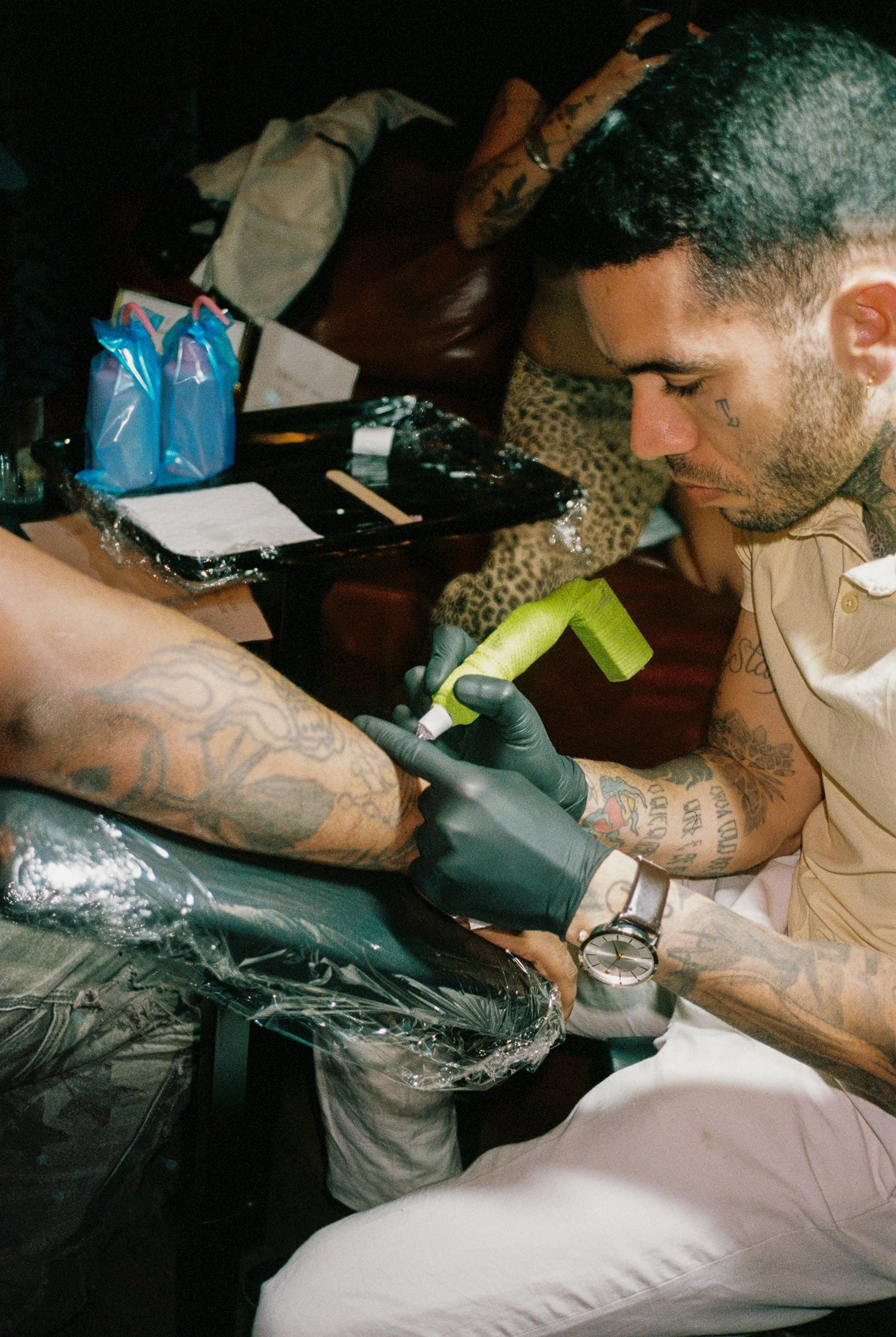 Each venue varies, but we adhere to strict health codes. Once we receive approval from the venue, we require a spacious, low-traffic environment to ensure safety and comfort during tattoo sessions.